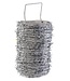 Le fil de fer barbelé se compose de 2 fils tressés de 1,7 mm, soit une épaisseur totale de fil d'environ 3,4 mm. Cela confère au fil barbelé une grande résistance à la traction. Tous les 13 cm, les fils sont munis de 4 pointes à bords biseautés. Les pointes mesurent 1,4 mm.